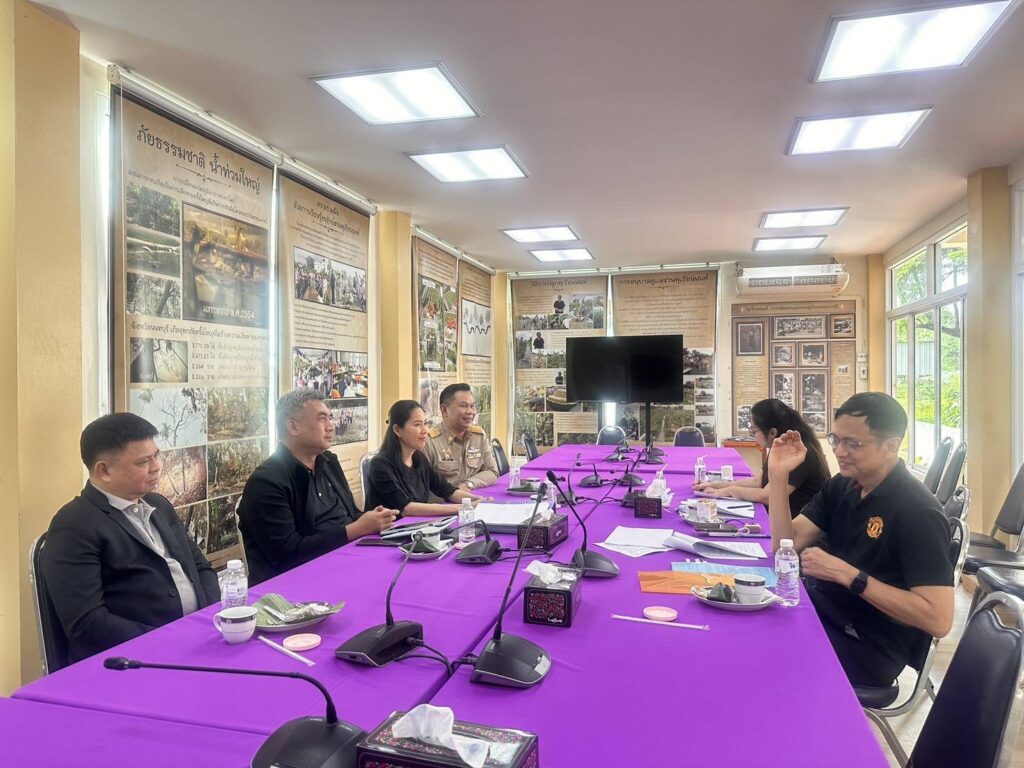 เมื่อวันที่ 30 ตุลาคม 2568 เวลา 15.00 น. ณ อาคารเรือนไทย สวนสมเด็จพระศรีนครินทร์ นนทบุรี นายปวิณ ชำนิประศาสน์ รองเลขาธิการมูลนิธิสวนสมเด็จพระศรีนครินทร์ฯ นายสมศักดิ์ ลามอ รองนายกเทศมนตรีนครปากเกร็ด นายสุทร บุญสิริชูโต ผู้เชี่ยวชาญพิเศษด้านการวางแผน นายสิงหา เม่งพัด ผู้อำนวยการส่วนการโยธาและเจ้าหน้าที่เทศบาลนครปากเกร็ด เข้าร่วมประชุมหารือเรื่องแนวทางการดำเนินงานโครงการอนุรักษ์พันธุกรรมพืชอันเนื่องมาจากพระราชดำริฯ (อพ.สธ.) และการประเมินการกักเก็บคาร์บอนเครดิตในต้นไม้ในสวนสมเด็จพระศรีนครินทร์ฯ